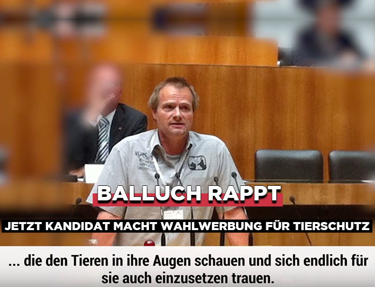 Österreichs bekanntester Tierschützer und JETZT-Kandidat Martin Balluch macht Wahlwerbung mit einem Rap. Balluch wandelt damit auf den Spuren von Ex-FPÖ-Chef HC Strache, der seit 2005 traditionell Wahlkampf-Raps veröffentlicht. Doch außer ihren musikalischen Vorlieben trennt Balluch und Strache Vieles – gerade beim Thema Tierschutz.