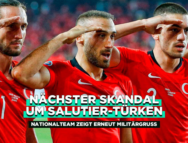 Türkische Nationalspieler sorgten gestern beim 1:1 in der EM-Quali gegen Frankreich für den nächsten Eklat. Aller UEFA-Drohungen zum Trotz, salutierten die Nationalspieler nach dem Ausgleich erneut mit dem Militärgruß in Richtung Fans, um ihre Unterstützung für die Militäroffensive Erdogans auszudrücken.