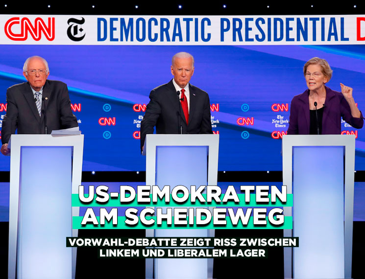 In einem Jahr steigt die nächste Präsidentschaftswahl in den USA. Während Trump immer tiefer im Ukraine-Sumpf steckt, bringen sich die Demokraten in Stellung. In der gestrigen Vorwahl-Debatte ging es heiß her: Die in den Umfragen führende, Partei-Linke Elizabeth Warren wurde heftig von ihren Mitbewerbern des liberalen Flügels der Demokraten angegriffen. Einmal mehr zeigt sich: Der interne Riss der Demokraten dreht sich vor allem um die Frage, ob der Wandel im Land radikal oder pragmatisch vollzogen werden soll.