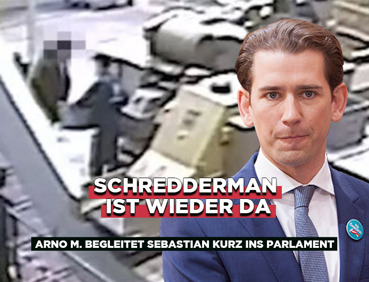 Denn, wie ein aufmerksamer Besucher der Plenarsitzung auf einem Foto festhalten konnte, brachte Sebastian Kurz einen alten Bekannten mit ins Parlament. Und viele staunten nicht schlecht: der „Schredderman“ ist wieder da! Jener Arno M., der als Leibfotograf und Social-Media-Sekretär für den ÖVP-Chef tätig war, brachte im Mai, kurz nach Ibiza, unter dem Namen Walter Maisinger fünf Festplatten aus dem Kanzleramt zur Firma Reisswolf.