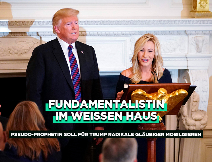 Beängstigend, die Beraterin von Trump. Sie „betete“ schon bei Trumps Amtseinführung. Mittlerweile ist sie im Weißen Haus auf Tuchfühlung mit dem Präsidenten. Zweck: Wahlkampf. Sie soll die 50-70 Millionen evangelikalen US-Amerikaner für die Wahl 2020 mobilisieren. Bei dieser teils stark fundamentalistischen Kirche in der USA kommt eine Wahn-Predigerin wie White gut an.