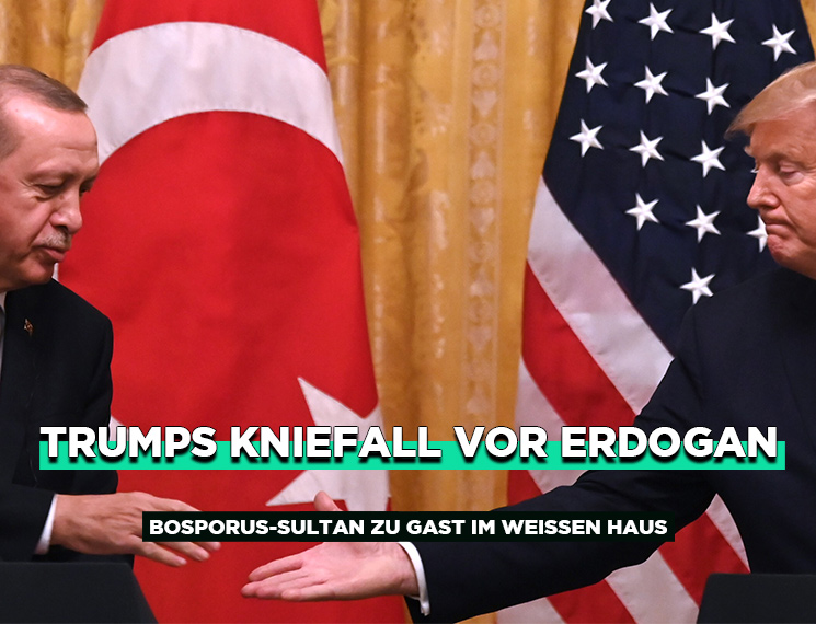 Trump eröffnete seine Rede mit Lobeshymnen auf Erdogan. Eine „lange Freundschaft seit Tag eins“ mit dem türkischen Präsidenten präge die Beziehung zwischen den beiden. Erdogan goutierte die Schmeicheleien wohlwollend. Als er jedoch selbst zum Wort kam, wies er Trump in die Schranken. Er verlangte die Auslieferung von Erdogans Erzfeind Fethullah Gülen. Den Prediger bezichtigt Erdogan als den Rädelsführer des Putschversuches 2016 in der Türkei. Dieser wohnt seit 1999 im selbstgewählten Exil im US-Bundesstaat Pennsylvania. Erdogan schoss weiter: die jüngste Resolution des amerikanischen Repräsentantenhauses für die Anerkennung des Genozids der Türkei an den Armeniern bezeichnete er als Unmöglichkeit. Und Trump? „Big Fan“ von Erdogan, so die Antwort des zum Juniorpartner degradierten „Commander-in-Chief“. Auch sonst schmierte er Erdogan gehörig Honig ums Maul. Die Türkei sei ein großartiger Nato-Partner. Das Thema Syrien versuchte er dabei konsequent zu vermeiden. Die USA überließen durch ihren Truppenrückzug in Syrien die Kurden der türkischen Militäroffensive.