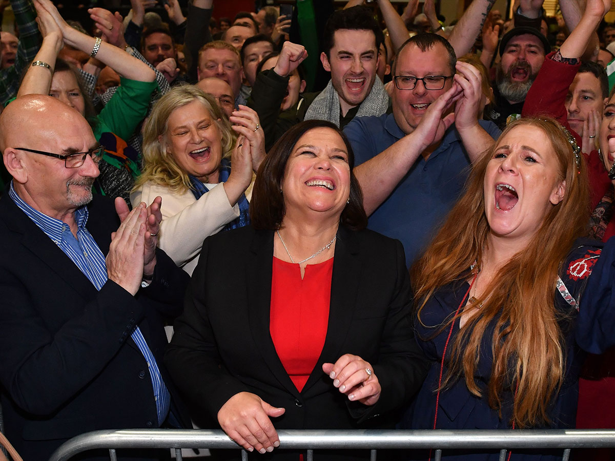 Titelbild: APA Picturedesk, Sinn Féin-Chefin Mary Lou McDonald feiert den Wahlsieg mit ihren Parteikollegen.