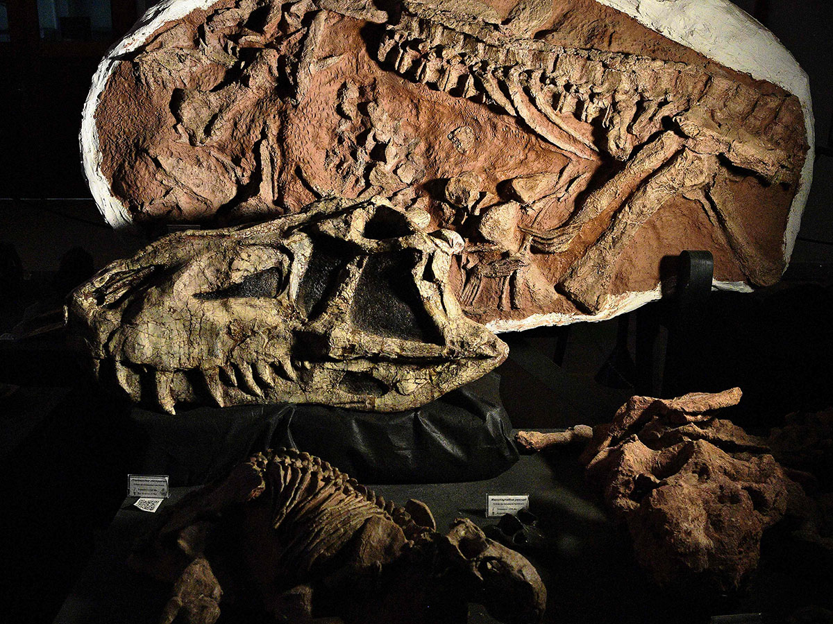 Der nur zwölf Millimeter lange Kopf der Vellbergia wird im Museum per Mini-Computertomograph untersucht. Zu sehen sind Hirnknochen und Zähne des Insektenfressers.