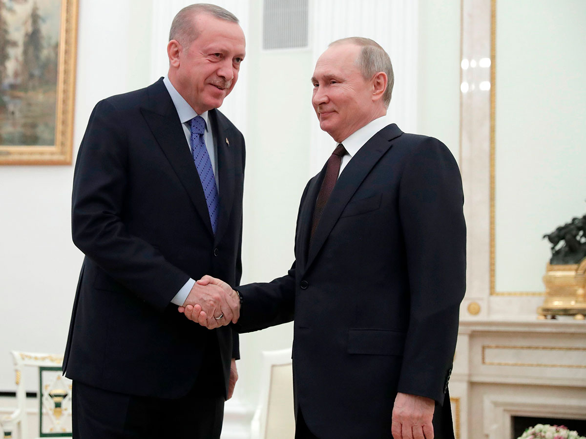 Russlands Präsident Wladimir Putin hat Erdogan unterdessen bei einem bilateralen Treffen in Moskau versichert, dass es zu keinen weiteren Angriffen auf türkische Soldaten in Syrien kommen soll. Die mit Russland verbündete syrische Armee sei nicht über den genauen Standort der türkischen Soldaten informiert gewesen, sagte Putin zu Beginn eines Gespräches mit Erdogan in Moskau. Er sprach Erdogan sein Beileid über den Tod mehrerer Dutzend türkischer Soldaten aus, die in der Region Idlib getötet worden waren.