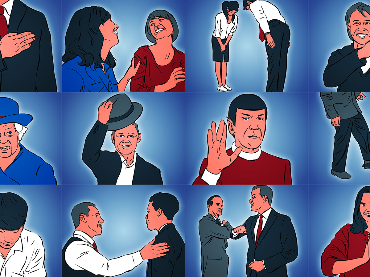 Die unter Freunden klassische Begrüßung mit Bussi links, Bussi rechts ist dieser Tage absolut tabu. Genauso steht der feuchte Händedruck unter Generalverdacht. Ein „Hallo“ alleine, ohne zugehörige Geste, fühlt sich für viele von uns allerdings allzu leer an. ZackZack präsentiert Alternativen, sodass die persönliche Begrüßung nicht ausbleiben muss.