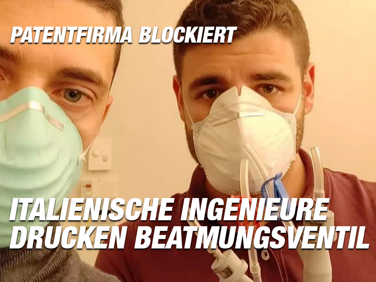 Zwei junge italienische Ingenieure versuchten, enorm wichtige Beatmungsventile per 3D-Drucker herzustellen. Doch dann hieß es, die Herstellungsfirma würde klagen, sollte das patentierte Gerät nun im großen Stil nachgedruckt werden. Die Firma Intersurgical dementiert, dennoch hält sie Detail-Pläne zurück.