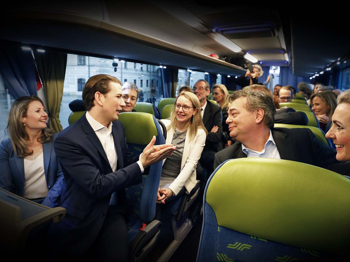 Da die Dienstwägen auch zum Ort der Klausur gebracht werden mussten, war die Busfahrt auf dem Hinweg für die meisten ÖVP-Minister offenbar reine Inszenierung.
