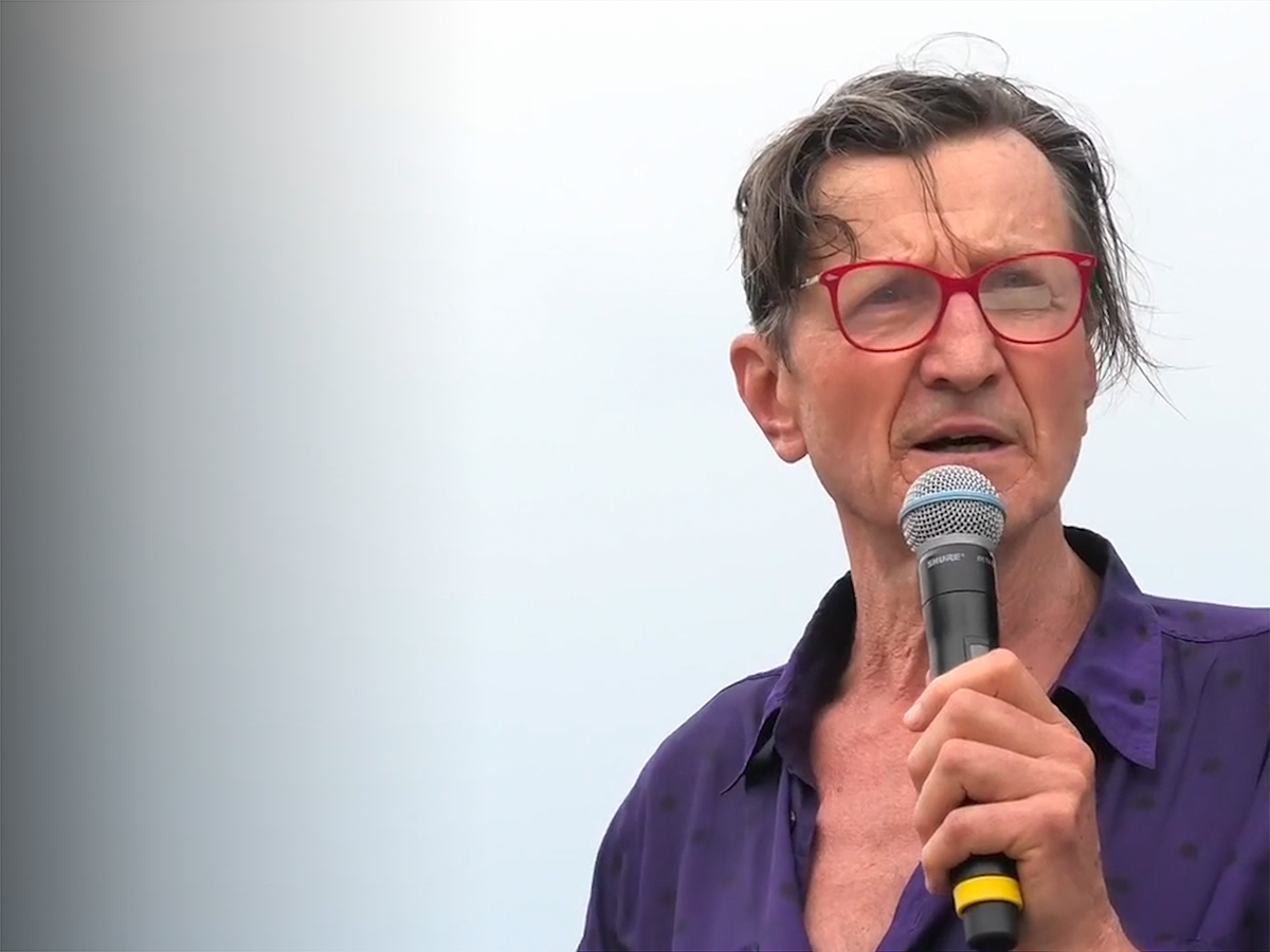 Hubsi Kramar leitete mit seiner Rede zu einer Schweigeminute über. Er kritisierte das Vorgehen der Regierung in Sachen Corona-Maßnahmen, sprach von Faschismus und von Kapitalverbrechen an den Grundrechten der Österreicher und fand scharfe Worte zu Sebastian Kurz, Gernot Blümel und Co.: