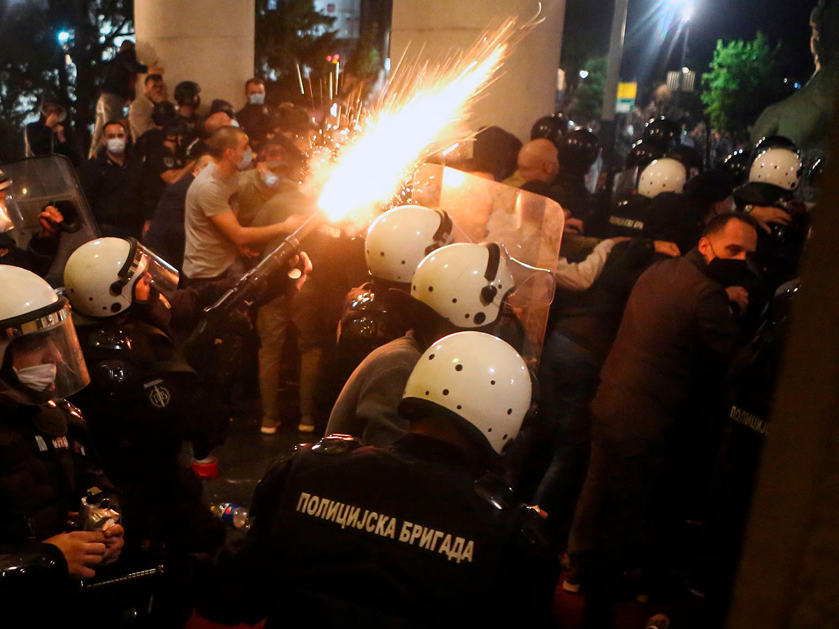 Nacht der Polizeigewalt in Belgrad. Nachdem der serbische Premierminister Alexandar Vucic gestern Abend neue Ausgangssperren angekündigt hatte, zogen Demonstranten vor das Parlament und vor die staatlichen Fernsehzentren. Die Polizei reagierte mit massiver Gewalt.