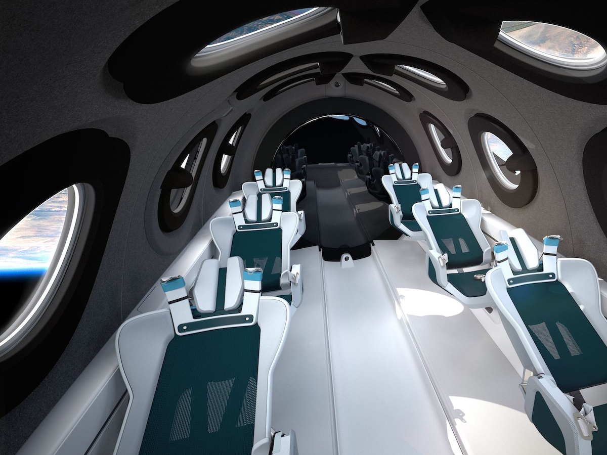 Am heutigen Mittwoch veröffentlichte Virgin Galactic zum ersten Mal Einblicke in das Innenleben des Flugzeuges. Passagiere können sich unter anderem auf einen großen, kreisförmigen Spiegel im hinteren Teil des Flugzeuges freuen, “damit sich unsere Kunden in einer Art und Weise im Weltraum sehen können, wie es noch nie zuvor gegeben hat”, so George Whitesides, Chef der Raumfahrtoperationen von Virgin Galactic.