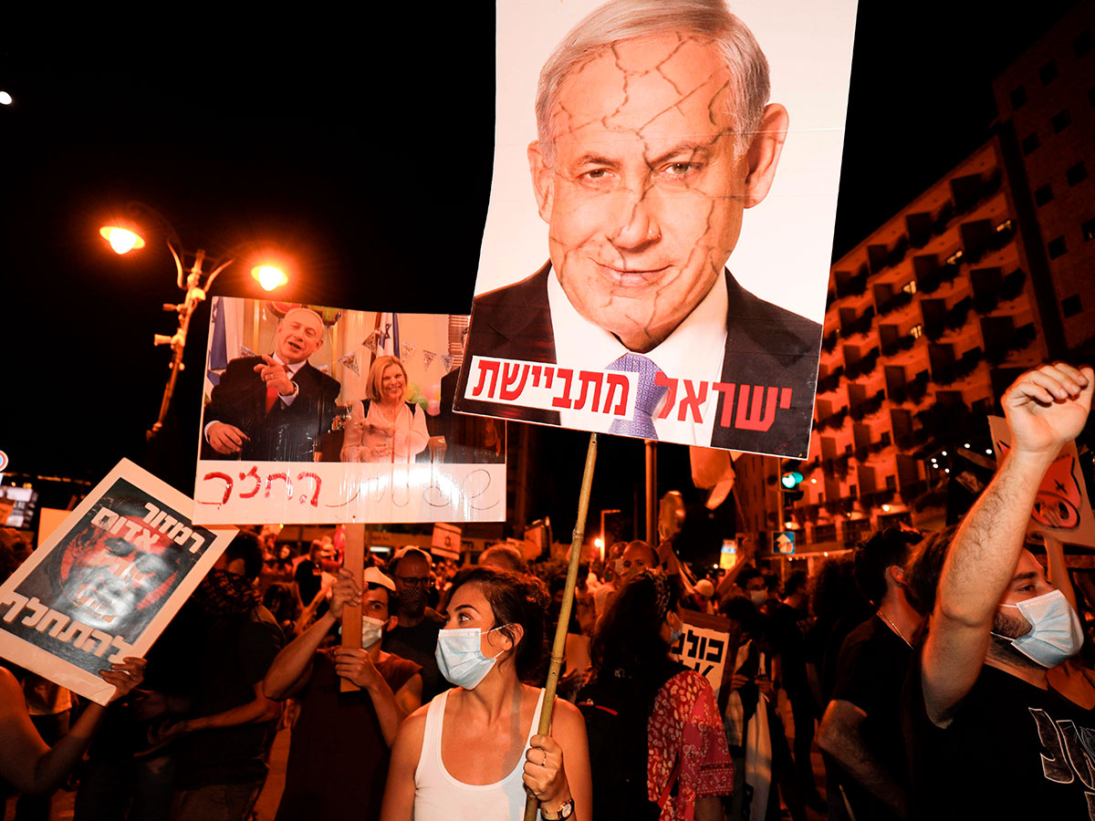 Wurde Regierungschef Benjamin Netanjahu zu Beginn der Corona-Pandemie noch für sein Krisenmanagement gelobt, sieht er sich nun starker Kritik gegenüber. Der 70-Jährige räumte unter anderem vorschnelle Lockerungen ein. Die Arbeitslosigkeit in Israel liegt bei mehr als 20 Prozent. Für Druck auf Netanyahu sorgt auch ein gegen ihn laufender Prozess. Er ist wegen Betrugs, Untreue und Bestechlichkeit angeklagt. Netanyahu bestreitet die Vorwürfe. Seit Wochen gibt es Proteste gegen ihn, auch nahe der Residenz des Regierungschefs in Jerusalem und vor seiner Villa im Küstenort Caesarea.