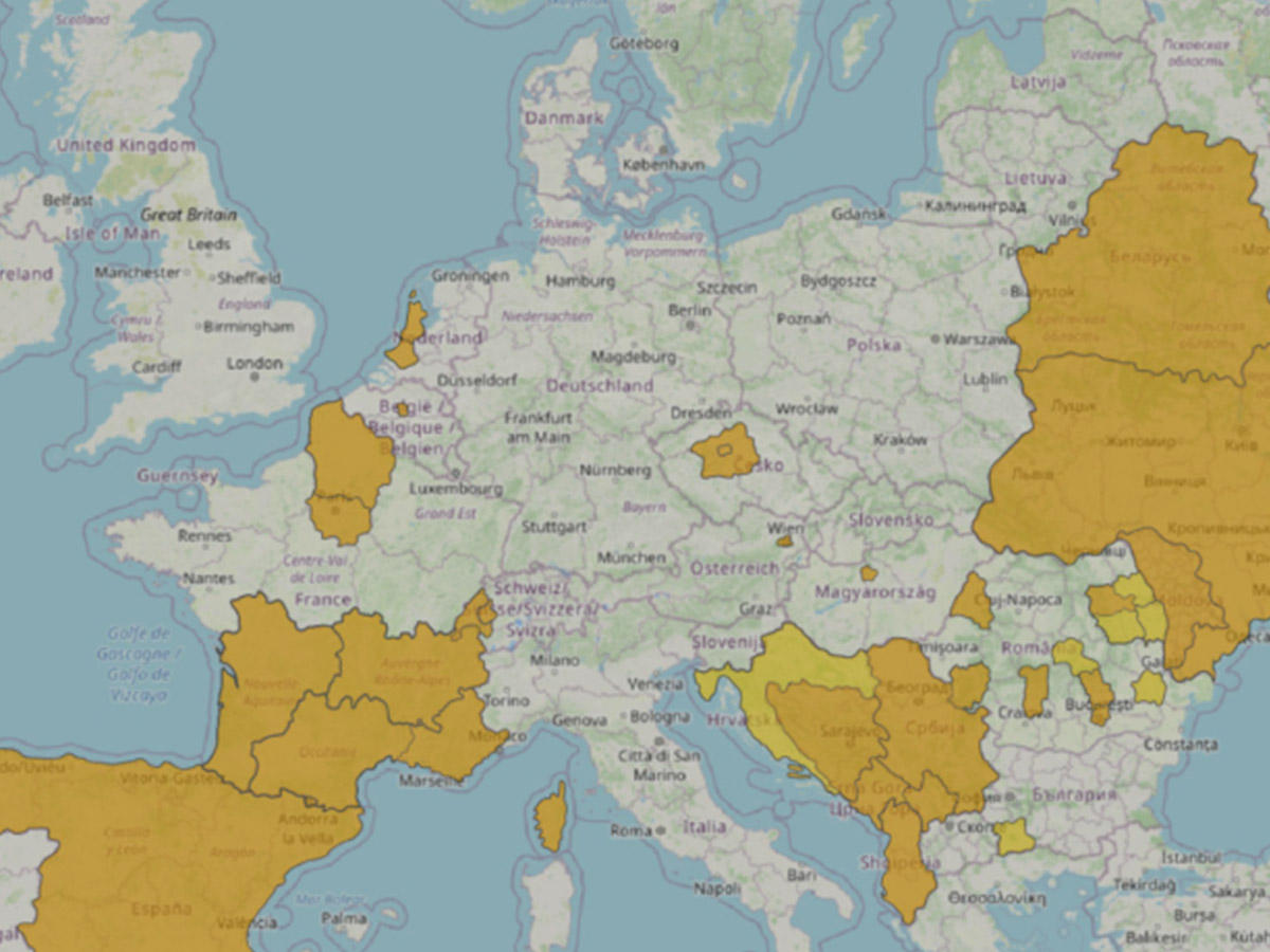 Orange: Ganze Länder, die auf der Liste sind oder Regionen, die grafisch darstellbar sind.