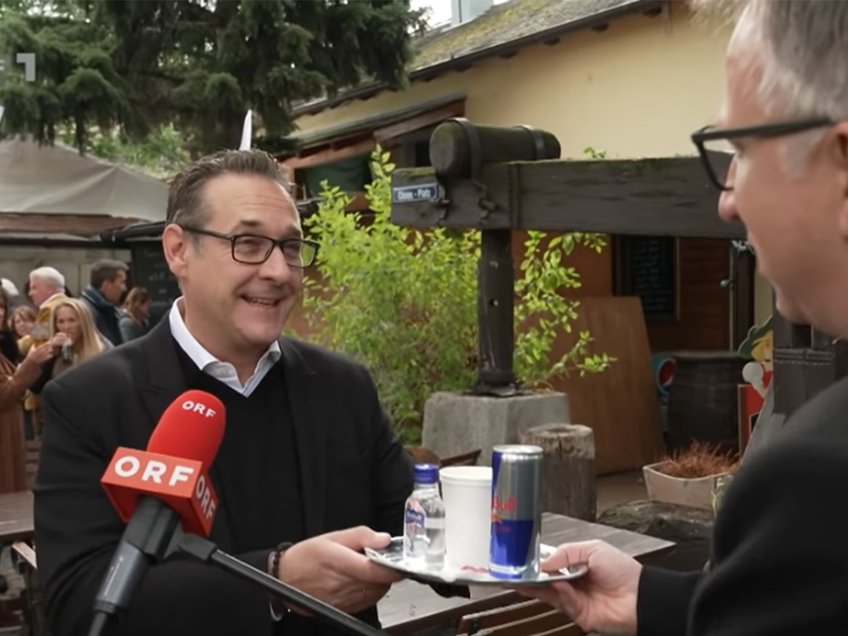 Für Spitzenkandidat Strache brachte Klien ein ganz besonderes Gastgeschenk mit: ein Tablett mit Vodka Red Bull. Das alkoholische Getränk hatte im Ibiza-Video als Nebendarsteller von Strache und Gudenus fragwürdige Bekanntheit erlangt. Strache nahm die Gaben des Peter Klien zwar dankend an, für Strache sei es dafür aber „noch zu früh“ – und stellte es ab. In der letzten Zeit trinke der „Red Bull Brother from Austria“ das Getränk nicht mehr so häufig.
