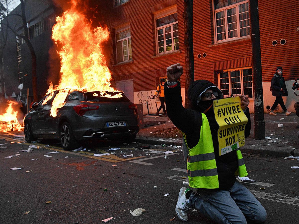 Begannen die Proteste zunächst friedlich, entwickelte sich die Demonstration vor allem in Paris zu einem Aufstand. Es kam zu heftigen Auseinandersetzungen zwischen Polizei und Demonstranten, Autos wurden angezündet. Über der Straße hing eine pechschwarze Rauchwolke. Eine Bankfiliale wurde komplett auseinandergenommen, berichtet die „APA“.