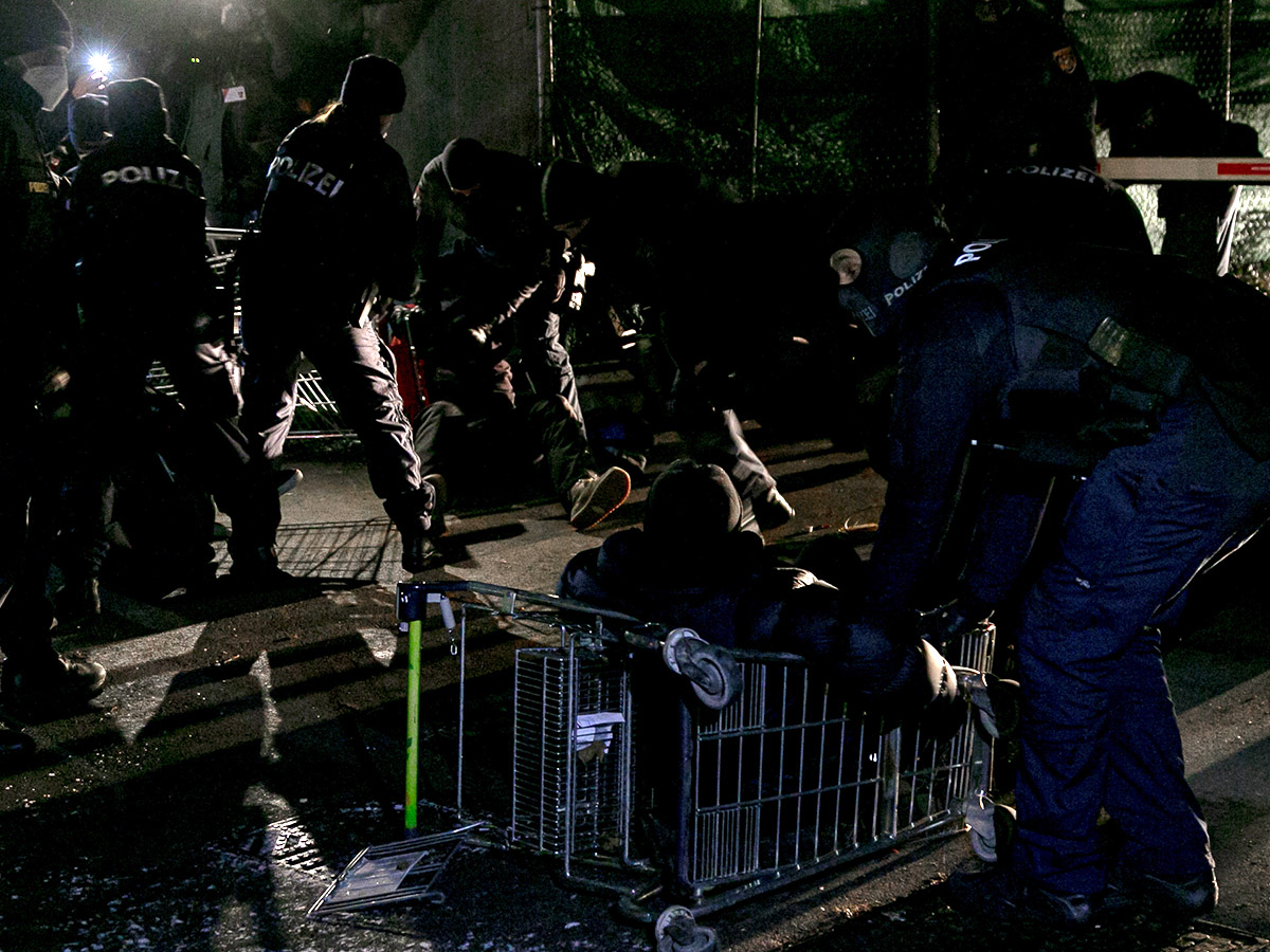 „Kann man das noch wirklich verhindern, oder ist es nur ein Spiel auf Zeit? Das war die große Frage. Es ist immer mehr Polizei gekommen. Als es so ausgeschaut hat, als würde geräumt werden, haben sich die Leute gemeinsam auf den Boden gesetzt. Die Polizei hat sich so lang gesammelt, bis sie sich sicher war, sie kann uns jetzt locker fünfmal wegräumen. Das ist dann auch passiert, in einer halben Minute. Die Polizei hat alle innerhalb ihrer Kette rausgestoßen, mit ordentlich Schwung. Mir hat nachher der Rücken geschmerzt.