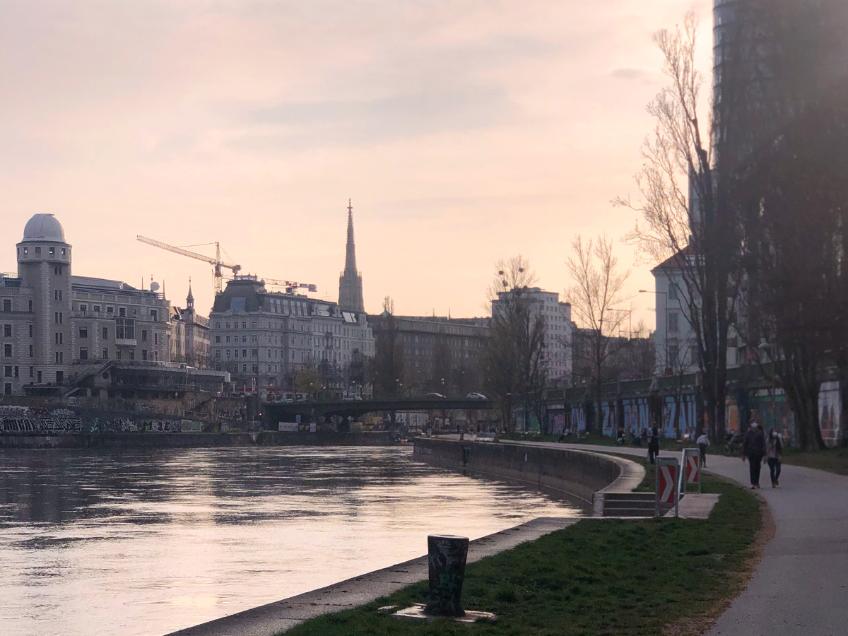 Auch am Donnerstag war das Wetter in Wien frühlingshaft bei sonnigen 23 Grad. Normalerweise würden hier lauter Menschen lebensfroh am Kanal sitzen. Der Ort wirkte am Donnerstag wie ausgestorben. Vereinzelt gingen Menschen noch spazieren, darunter auch ein paar mit FFP2-Maske. / Foto: ZackZack