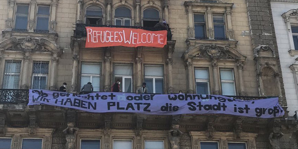 Wien, 26. April 2021 | “Ob geflüchtet oder wohnungslos, wir haben Platz die Stadt ist groß”, ist auf einem der vielen Banner zu lesen, die seit mehreren Stunden die Hauswand eines alten Wohnhauses am Rathausplatz in Wien zieren.