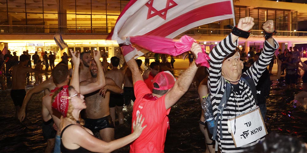 In der Küstenstadt Tel Aviv feierten mit Beginn der Vereidigung viele Menschen ausgelassen den Abstimmungserfolg der neuen Regierung. Auf dem Rabin-Platz schwenkten sie Israel-Flaggen, hupende Autos fuhren durch die Straßen.
