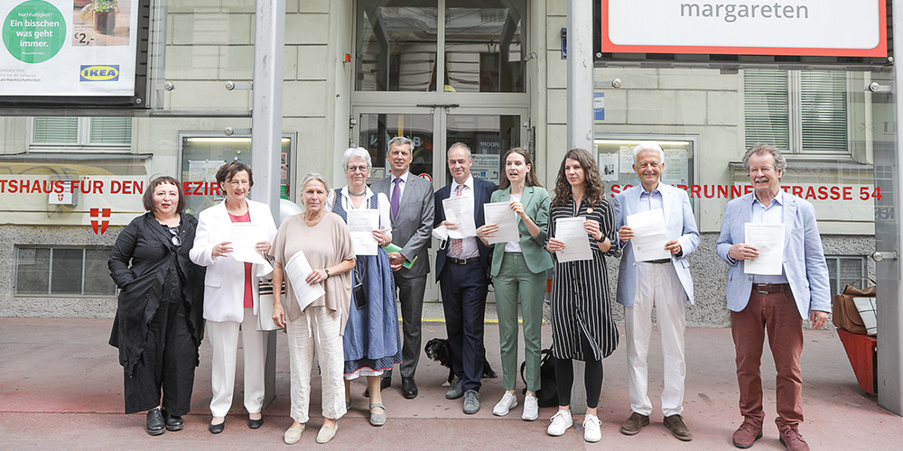 Bei dem Fototermin im Amtshaus Margareten waren u.a. Ex-Justizministerin Maria Berger (SPÖ), Menschenrechtsexperte Manfred Nowak und die Schriftstellerin Julya Rabinowich vor Ort. Ihre Unterstützung erklärten laut den Organisatoren am Mittwoch auch die ÖVP-Politiker Othmar Karas und Ex-EU-Kommissar Franz Fischler.