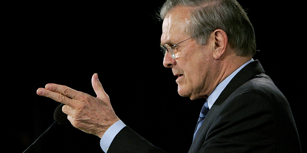 Wien, 01. Juli 2021 | Der Republikaner war zweimal Pentagon-Chef: unter Präsident Gerald Ford in den 1970er Jahren und unter George W. Bush von 2001 bis 2006. Er galt als einer der Hauptinitiatoren des Irak-Krieges 2003 gegen Diktator Saddam Hussein.