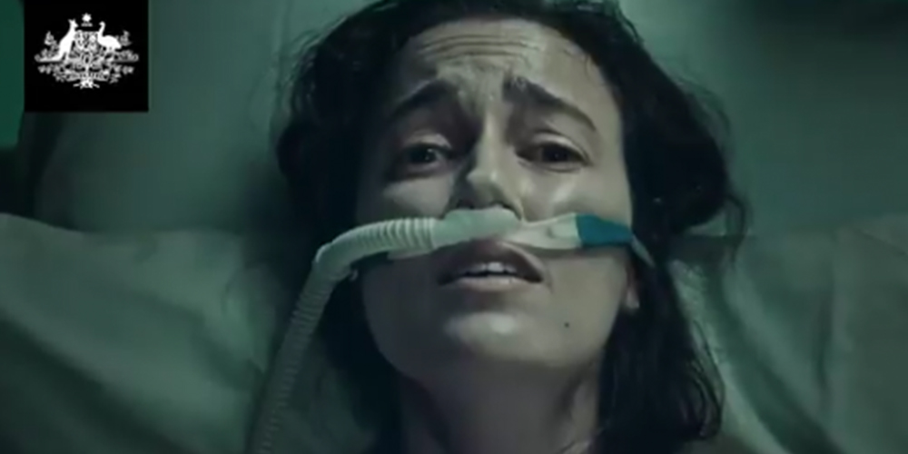 Eine junge Frau, die an einem Beatmungsgerät angeschlossen ist, ringt verzweifelt um Luft. Mit dieser furchteinflößenden Szene wirbt Australiens Regierung derzeit in einem Video für die Corona-Impfung.