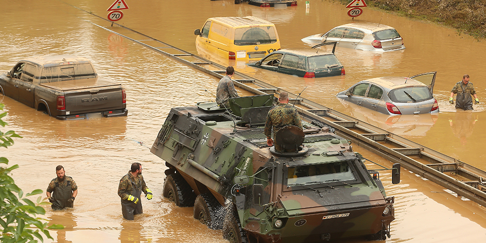Ahrweiler/Erftstadt, 17. Juli 2021 | Während sich die Wassermassen aus vielen Flutgebieten in Nordrhein-Westfalen und Rheinland-Pfalz langsam zurückziehen, wird in den Trümmern der Katastrophengebiete weiterhin nach Todesopfern gesucht. Bis zum Samstagmittag stieg diese Zahl auf mehr als 130. Allein im Großraum Ahrweiler kamen nach Angaben der Polizei über 90 Menschen ums Leben.