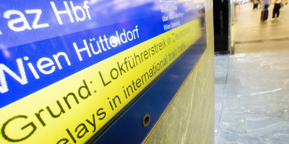 Berlin/Wien, 23. August 2021 | Die Gewerkschaft Deutscher Lokomotivführer (GDL) legt mit einem Streik bei der Deutschen Bahn seit den frühen Morgenstunden den Großteil des Zugverkehrs in Deutschland lahm. Bis Mittwochfrüh, 2.00 Uhr, müssen sich Millionen Reisende auf starke Einschränkungen vor allem im Fernverkehr einstellen. Voraussichtlich werden auch Verbindungen von und nach Österreich betroffen sein.