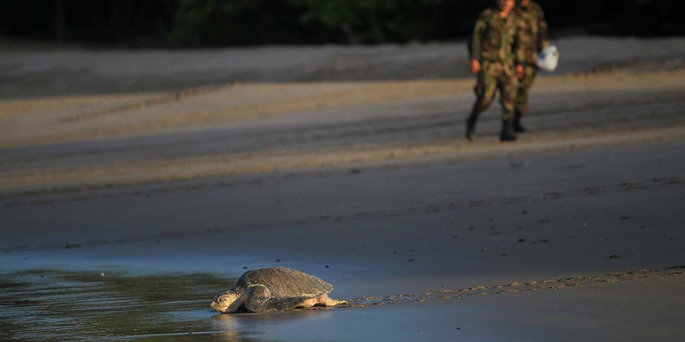 Managua, 08. Dezember 2021 | Tausende Meeresschildkröten haben am Wochenende an der Küste Nicaraguas unter Militärschutz ihre Eier gelegt. Zusammen mit den Umweltbehörden des Landes schützen Soldaten am Strand von La Flor in San Juan del Sur im Süden des Landes die Oliv-Bastardschildkröten, um zu verhindern, dass Anrainer aus benachbarten Gemeinden ihre Nester plündern. Die Schildkrötenart ist vom Aussterben bedroht.
