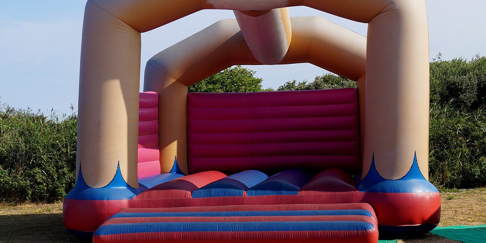 Wind schleuderte Hüpfburg in die Tiefe