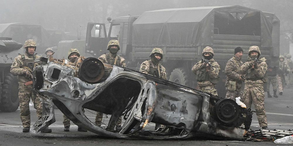 Am Mittwoch wandte sich Tokajew an das russisch-geführte Militärbündnis OVKS (Organisation des Vertrags über kollektive Sicherheit) und binnen Stunden trafen die ersten Einheiten aus 2.500 Soldaten inklusiver Fallschirmjäger aus Russland ein. Die Truppen sollen für die Stabilisierung des Landes sorgen. Dieser Schritt wurde international als Zeichen der Schwäche gesehen und die Sorge, dass die Truppen langfristig bleiben könnten, wird immer größer.