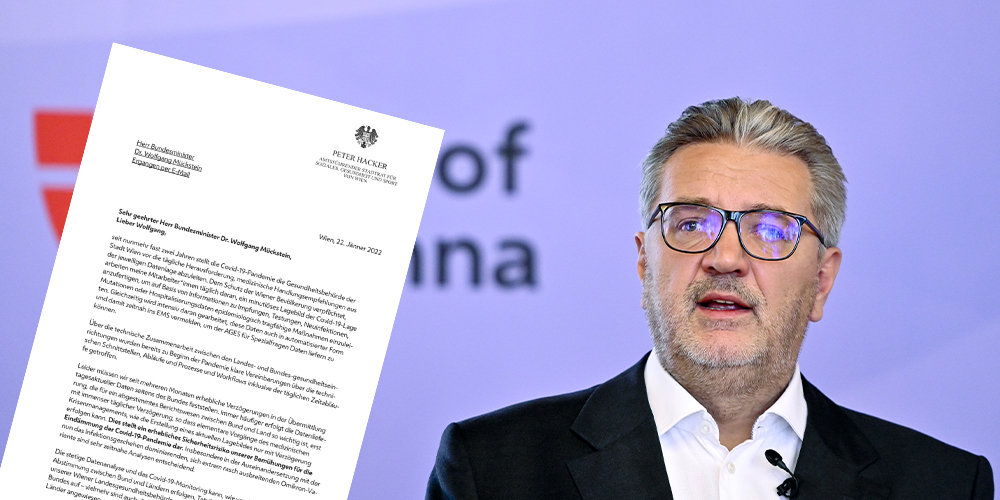 Konkret wendet er sich in einem Brief, der erstmals in “Wien Heute” zitiert wurde, persönlich an Gesundheitsminister Wolfgang Mückstein (Grüne). Hacker findet es “unglaublich”, momentan den mit Abstand schlechtesten aktuellen Überblick über die Situation in Wien seit Beginn der Pandemie zu haben. In Richtung Mückstein schreibt Hacker: “Ihr lasst uns völlig in der Luft hängen und statt kollegialer Zusammenarbeit lässt du auch noch gestern die völlige Falschmeldung via APA kommunizieren, dass das EMS fehlerfrei läuft.”