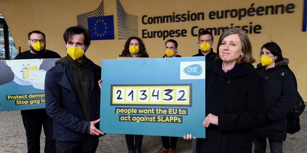 Brüssel, 01. Februar 2022 | Die Koalition gegen SLAPPs in Europa (CASE), eine Gruppe von 172 Nichtregierungsorganisationen, fordert von der Europäischen Kommission eine starke Richtlinie gegen sogenannte SLAPP-Klagen. Die Petition für eine entsprechende starke Anti-SLAPP-Richtlinie wurde von 213.433 Menschen unterstützt. Ziel solcher Klagen ist, die Beklagten durch die möglicherweise hohen Prozesskosten und den zu erwartenden Verfahrensaufwand einzuschüchtern. Betroffen sind häufig Medien, die unangenehm Bericht erstatten, Whistleblower und Teilnehmer friedlicher Proteste. Die Petition wurde heute an Věra Jourová übergeben, Vizepräsidentin der EU-Kommission und Kommissarin für Werte und Transparenz.