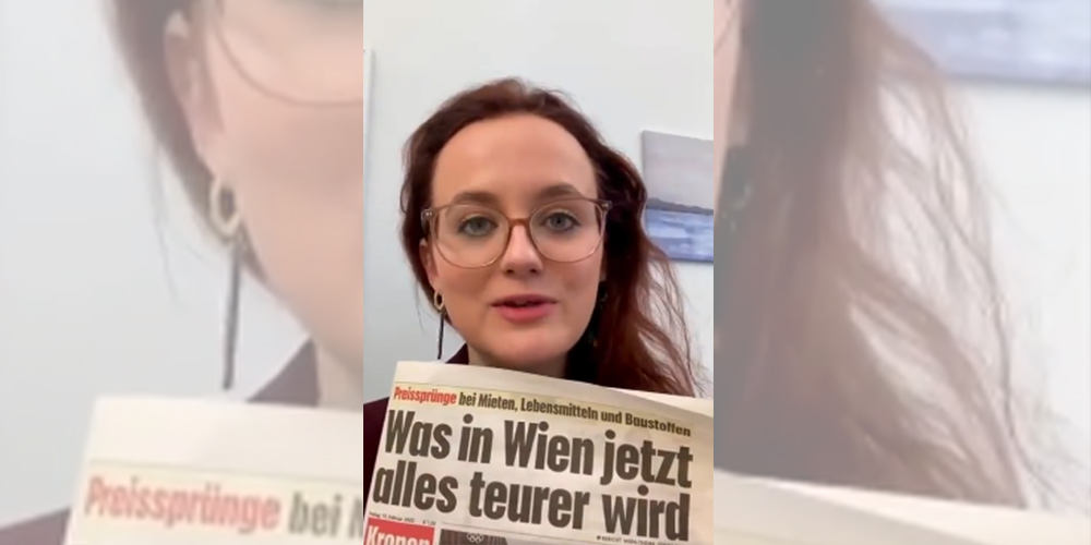 Am Freitag gab es nun einen neuen „Video-Hit“ der ÖVP-Generalsekretärin. Diesmal ging es um „unsere kleinen Pensionisten“. Sachslehner, mit einer Kronen Zeitung ausgestattet, beklagte sich diesmal über die Wiener Stadtregierung. Mit der prangernden Überschrift „Was in Wien alles teurer wird“ verwies Sachslehner darauf: „Solche Nachrichten zeigen uns, dass es nicht reicht, sich überall sozial draufzuschreiben. Das bringt nämlich unseren kleinen Pensionisten in Wien gar nichts.“
