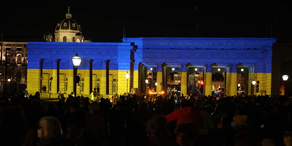 Seit der russischen Invasion ist in Österreichs Städten kein Tag ohne Demonstrationen, Kundgebungen und anderen Solidaritätsbekundungen für die Ukraine vergangen. Seit Sonntagabend erstrahlt mit dem Heldentor das erste Bundesgebäude in den ukrainischen Nationalfarben, Blau und Gelb.