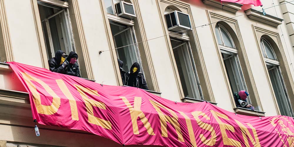 Wien, 18. März 2022 | Am Wiener Alsergrund ist derzeit ein Großeinsatz im Gange. Um die 20 Aktivisten der Kampagne “en commun – Solidarisch durch die Krisen” haben das ehemalige Sanatorium Löw in der Mariannengasse besetzt, welches seit Jahren leer steht. Damit soll gegen die aktuellen Preiserhöhungen und die steigenden Mieten protestiert werden. Das Leben würde für die meisten zunehmend unleistbar, hieß es in einer Aussendung.