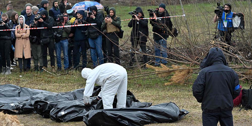 Insgesamt wurden in Butscha mehr als 400 Leichen gefunden, teils mit auf den Rücken gebundenen Händen. Die meisten Toten in Butscha wiesen nach Angaben der ukrainischen Polizei Schusswunden auf. Die Ukraine wirft den russischen Soldaten deshalb schwerste Kriegsverbrechen vor.