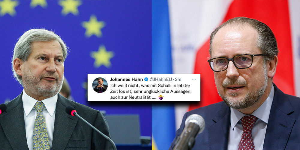Alexander Schallenberg sorgte mit seinen Aussagen über einen möglichen EU-Beitritt der Ukraine für Verstimmungen in Europa. EU-Kommissars Johannes Hahn (ÖVP) kritisierte Schallenberg auf Twitter scharf, löschte jedoch seine Kritik wieder. Es habe sich um ein „Versehen“ gehandelt.