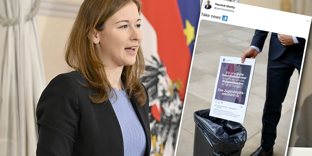 NEOS-LGBTIQ+-Sprecher Yannick Shetty zeigte seinen Frust über das Abstimmungsverhalten und den nicht gehaltenen Versprechungen der Regierung auf Twitter. Er postete ein Foto in dem er die JVP-Jubelmeldung über Plakolm kübelte, mit dem Übertitel „Fake News“.