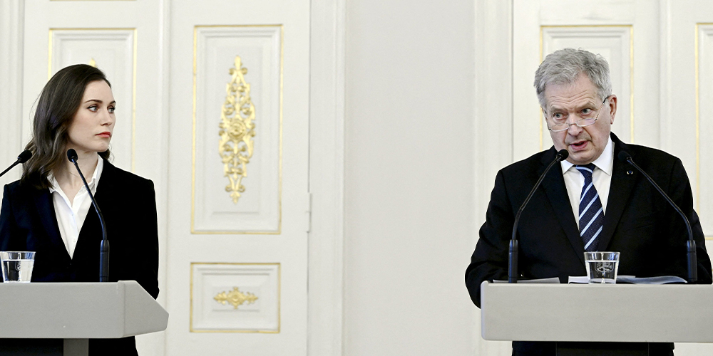 Niinistö und Marins Regierung entscheiden in der NATO-Frage letztlich gemeinsam, sie haben das Parlament aber in die Entscheidungsfindung mit eingebunden. Auf dem Weg zu einem Beschluss hatte die Regierung dem Reichstag in Helsinki bereits im April eine Sicherheitsanalyse vorgelegt, in der Vorteile und Risiken einer möglichen NATO-Mitgliedschaft beleuchtet werden. Eine Positionierung für oder gegen eine solche Mitgliedschaft beinhaltete die Analyse aber nicht.