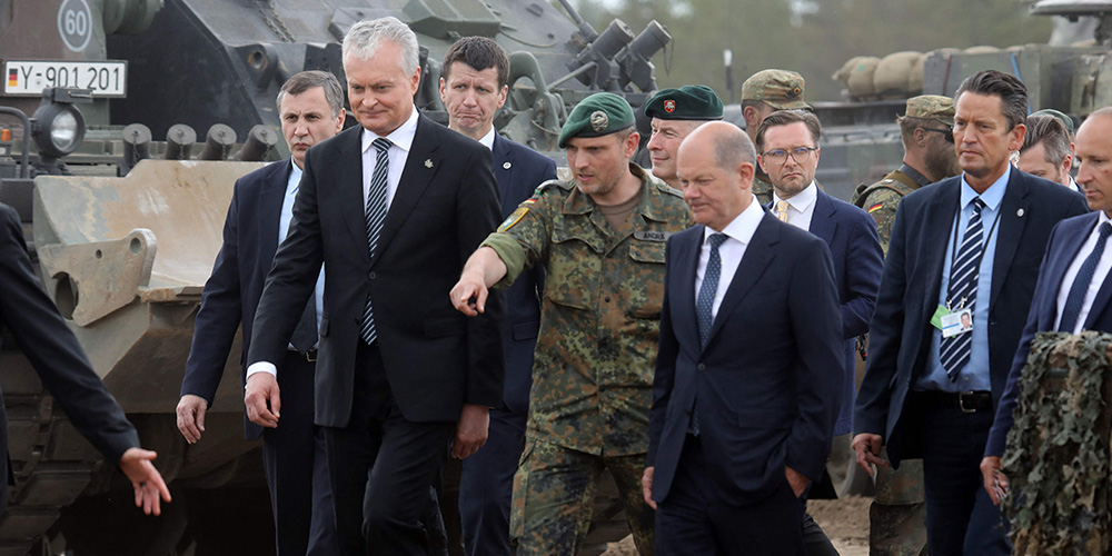 Der deutsche Bundeskanzler Olaf Scholz stattete am Dienstag erstmals einem an Russland angrenzenden NATO-Mitglied einen Besuch ab. In der litauischen Hauptstadt Vilnius traf er sich mit den Präsidenten der drei baltischen Staaten Lettland, Estland und Litauen und besuchte die in Litauen stationierten deutschen Soldaten auf ihrem Truppenübungsplatz. Dort sah er sich die Waffensysteme an, die den Soldaten zu Verfügung stehen.