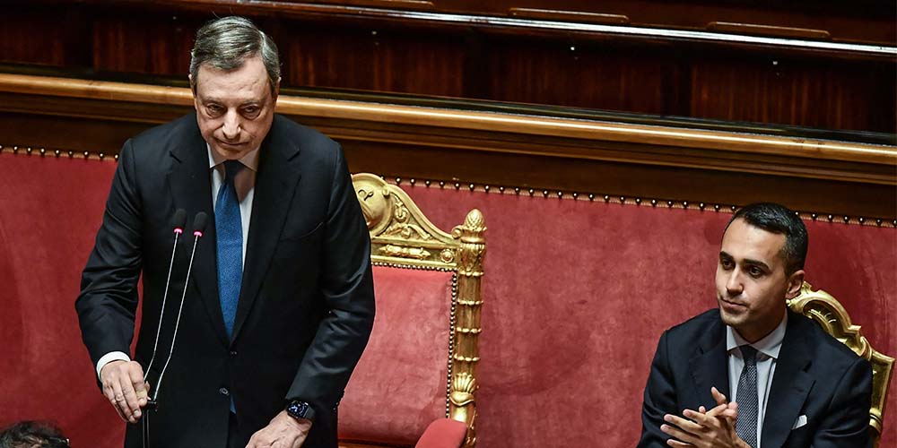 Rom, 22. Juni 2022 | Italiens Außenminister Luigi Di Maio (rechts im Bild) hat es getan. Er hat die Fünf-Sterne-Bewegung verlassen, um eine neue parlamentarische Fraktion zu bilden. Das könnte Auswirkungen auf die Stabilität der Mehrparteienkoalition haben. Denn die Fünf-Sterne-Bewegung war bisher die stärkste Einzelpartei im Parlament.