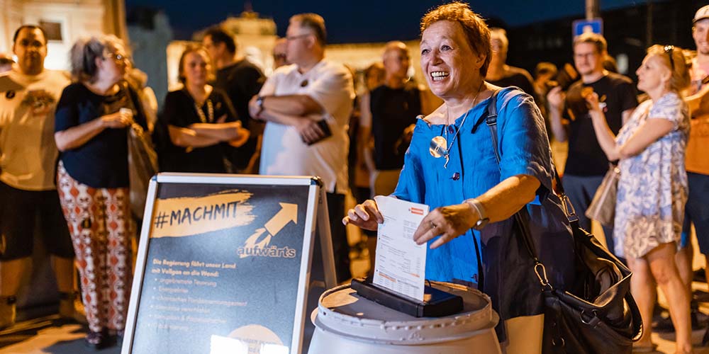 Die Initiative fordert Neuwahlen. Maria Bodner, eine der Organisatorinnen: „Wir warten nicht mehr, ob von der Regierung noch irgendetwas kommt außer Sesselkleben. Erst holen wir uns die Straße zurück und dann die Politik.“ Der Tod der Ärztin Lisa-Maria Kellermayr, die von Corona-Leugnern bedroht und von den Behörden im Stich gelassen wurde, habe das Fass zum Überlaufen gebracht.