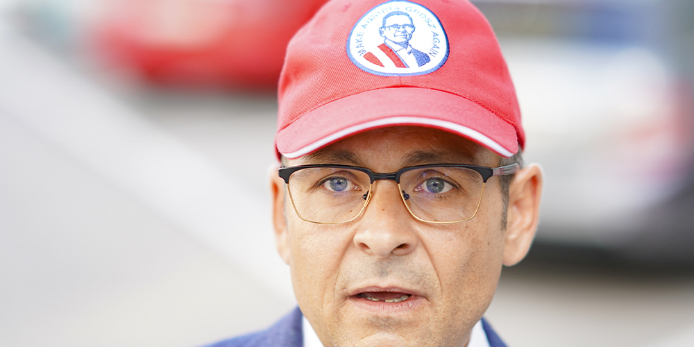Wien, 6. September 2022 | Gerald Grosz hat es wieder in die Öffentlichkeit geschafft. Beim Präsidentschaftskandidaten, der den meisten eher aus dem TV-Geplänkel beim Fellner-Sender „OE24“ bekannt ist, will sich trotz näher rückendem Wahltermin noch immer kein präsidentielles Verhalten einstellen. Nachdem er sich kürzlich am Altausseer Kirtag über „Zipferl-Rein, Zipferl-Raus“-Gedüdel belustigt hatte, ließ er diesmal vor der Hofburg Dampf ab.