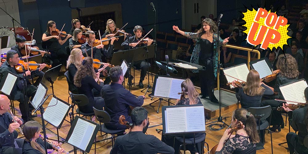 „Das ist euer Rockkonzert!“ Ihre Aufforderung ans Publikum war eindeutig. Die Idee dahinter: Zu Zeiten von Mozart, Haydn und Co. war Szenen-Applaus üblich, ganze Sätze mussten auf Wunsch des Publikumswunsch wiederholt werden. Die Komponistin Aghakhani leitete das Iunctus Orchester als Dirigentin also in der Tradition ihrer berühmten Vorgänger.
