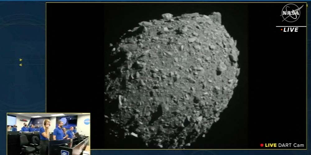 Im Kontrollzentrum der NASA brach daraufhin Jubel aus, das Team klatschte und umarmte sich gegenseitig. Bis kurz vor Aufprall war nicht ganz sicher gewesen, ob die mit einer Geschwindigkeit von rund 6,6 Kilometern pro Sekunde fliegende Sonde von der Größe eines Getränkeautomaten, die die letzten Minuten im Autopilot unterwegs war, den Asteroiden von der Größe eines Fußballstadions auch wirklich treffen würde.