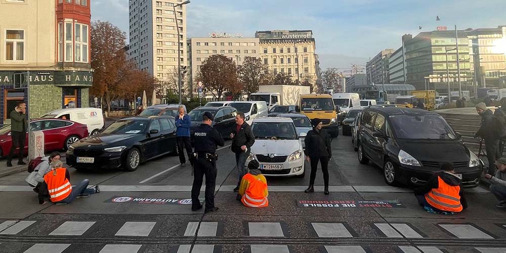 Wien, 24. Oktober 2022 | Der Montag, der für viele Menschen an sich schon eine Nervenprobe darstellt, wurde für jene, die am Montag um acht Uhr mit dem Auto über den Praterstern in die Arbeit fuhren, zum Horror. Denn als sich mehrere Aktivisten bei der Ausfahrt Praterstraße auf die Straße setzten und ihre Hände festklebten, ging plötzlich nichts mehr.