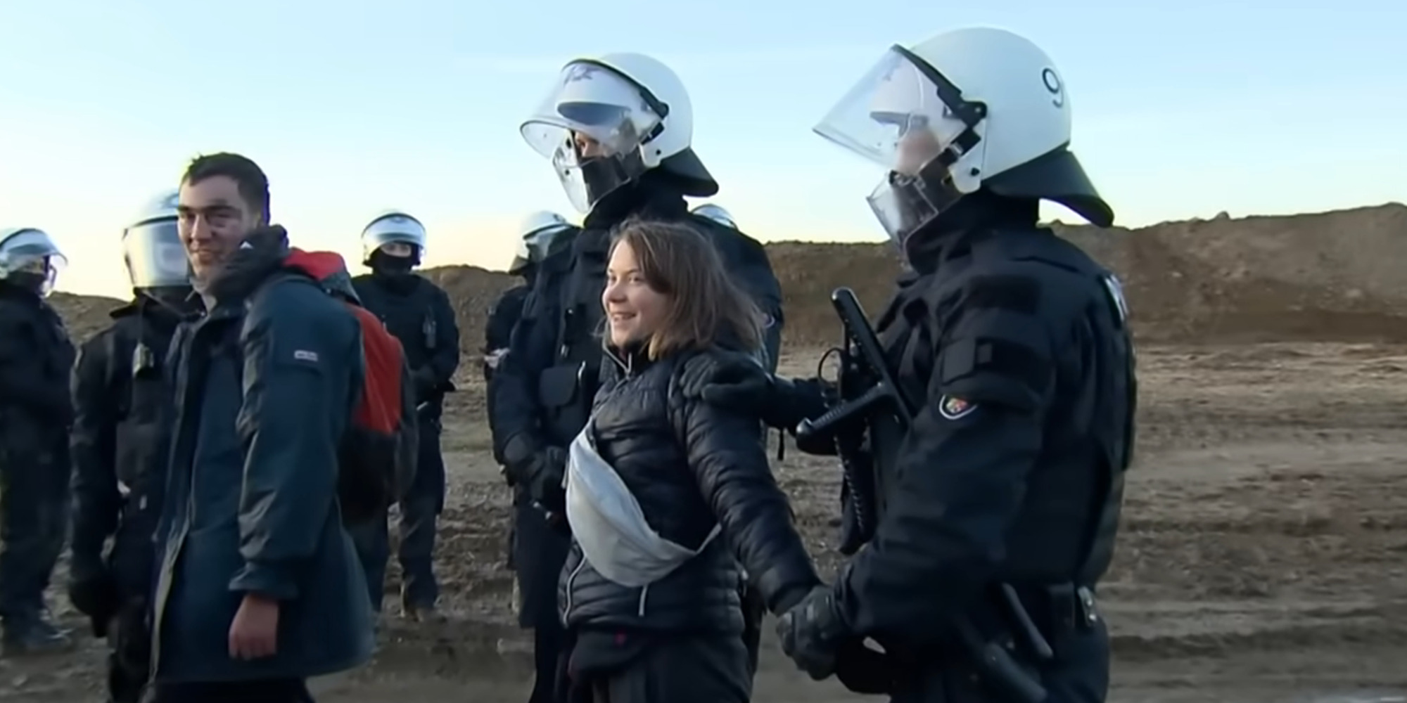 Sie ist eine von mehreren Menschen, die beim Protest gegen Braunkohleabbau in der deutschen Stadt von der Polizei abgeführt wurden. Die Bilder vom Wegtragen, auf denen Thunberg zufrieden lächelt, gingen durch alle Medien. Die Szenen davor, die als Videozusammenschnitt auftauchten, sorgten auf Twitter und in der Boulevard-Presse prompt für Empörung. Greta habe das Abgeführtwerden durch die Polizei nur gestellt, es sei alles nur für die Medien inszeniert gewesen, wird da unterstellt.