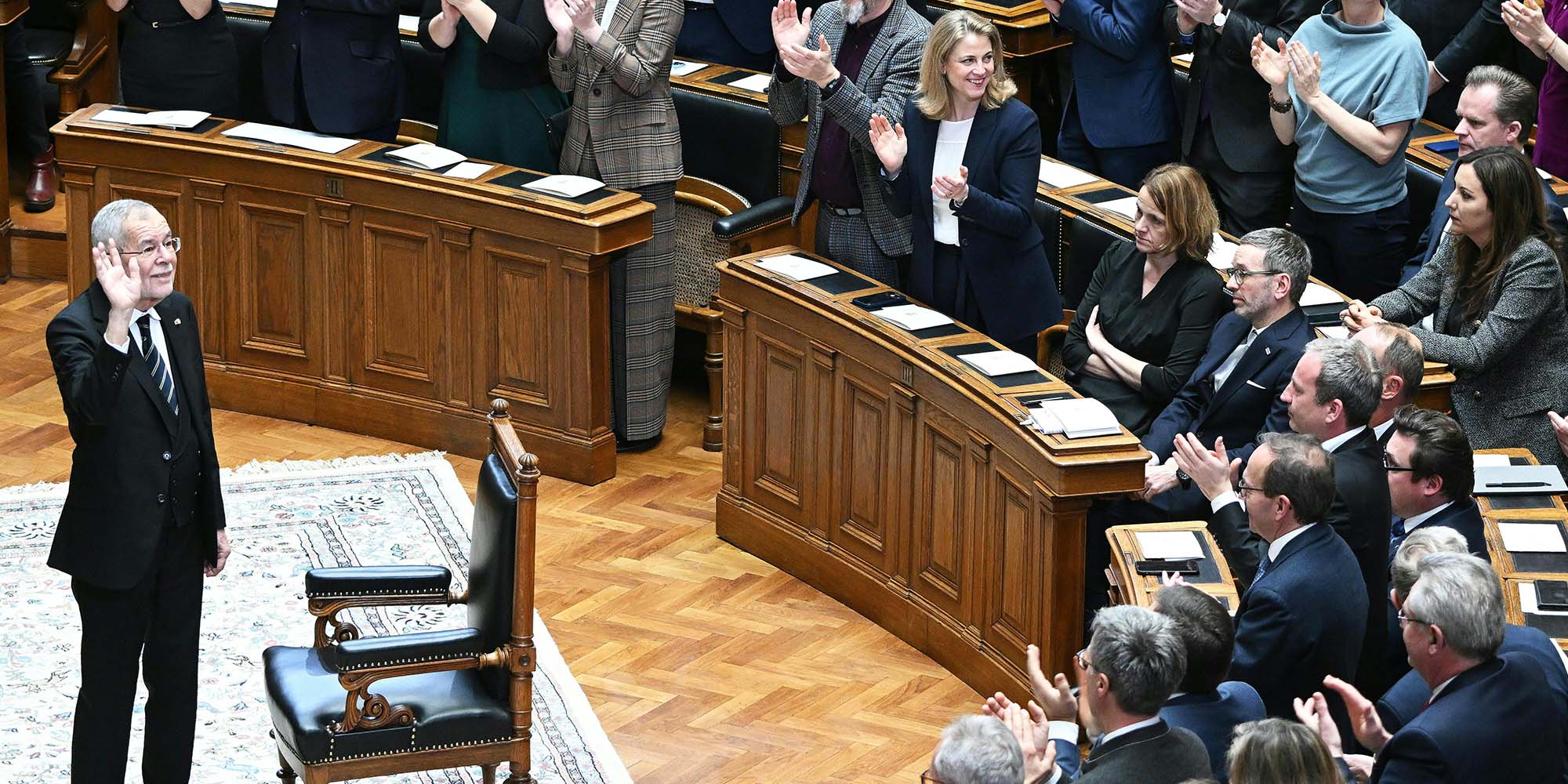 Wien, 26. Jänner 2023 | Alexander Van der Bellen ist am Donnerstag vor der Bundesversammlung erneut als Bundespräsident angelobt worden. Das Staatsoberhaupt sprach die von der Verfassung vorgegebene Formel und gelobte damit, “die Verfassung und alle Gesetze der Republik getreulich beobachten”. In einer – mit Ausnahme der FPÖ – mit Standing Ovations bedachten Rede betonte er, dass der Grundkonsens der Republik für ihn außer Frage stehe und man antidemokratische Tendenzen entschlossen stoppen müsse.