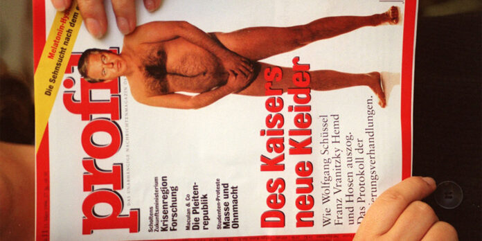 Auf dem Titelbild: Der “nackte Kaiser” Franz Vranitzky. Der kann inzwischen über das “Profil”-Cover lachen. Damals war er empört. (c): GEORGES SCHNEIDER / APA / picturedesk.com